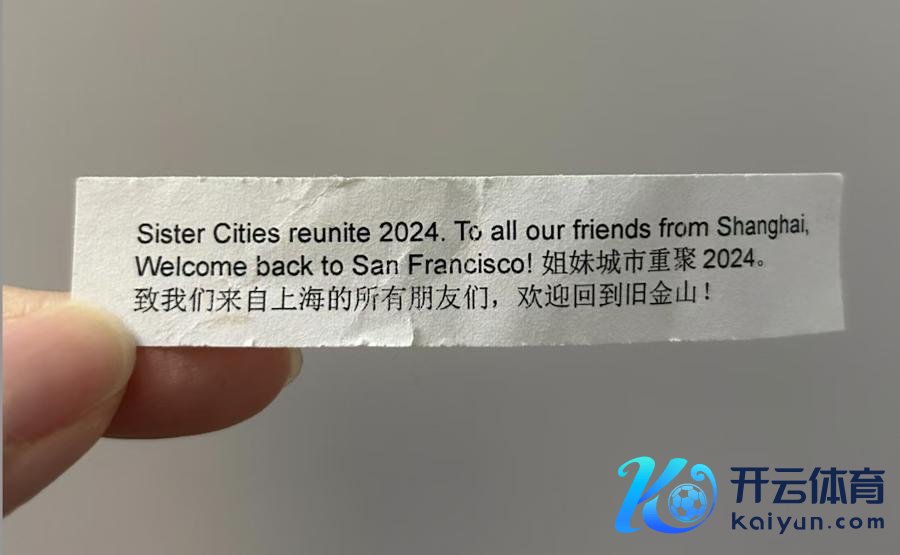 市政府外办职责主说念主员江颖难忘,手脚与上海订盟的首座好意思国友城,上海代表团出席“上海—旧金山湾区企业家工商午餐会”时,垄断方定制的餐巾圈上印有白玉兰斑纹,桌上运道签饼内的签语是“姐妹城市重聚2024。致咱们来自上海的所有一又友们,宽宥回到旧金山!”