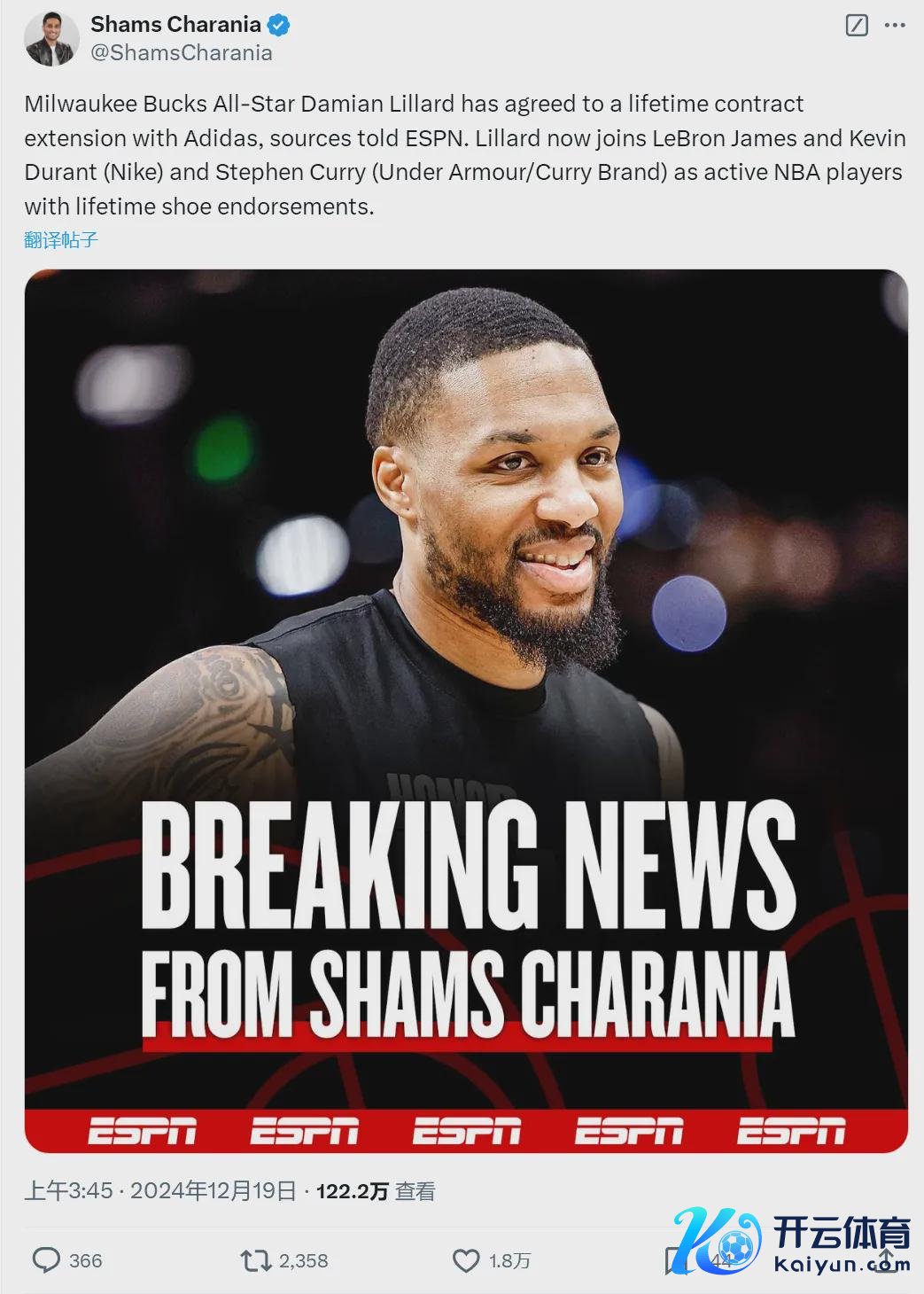 北京时代12月19日凌晨,据NBA名记Shams报说念,本心与阿迪签下毕生公约。利拉德成为现役第四位领有毕生公约的球星,此前三位是詹姆斯(耐克)、杜兰特(耐克)和库里(安德玛)。同是阿迪旗下的哈登,也没这待遇!